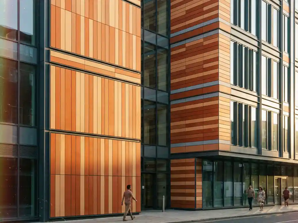 During morning and evening hours, when sunlight strikes facades at acute angles, vertical terracotta panels create pronounced shadow lines that emphasize the building’s height and add dramatic visual interest. These shadow patterns shift throughout the day, creating a dynamic facade that changes character with the sun’s movement.