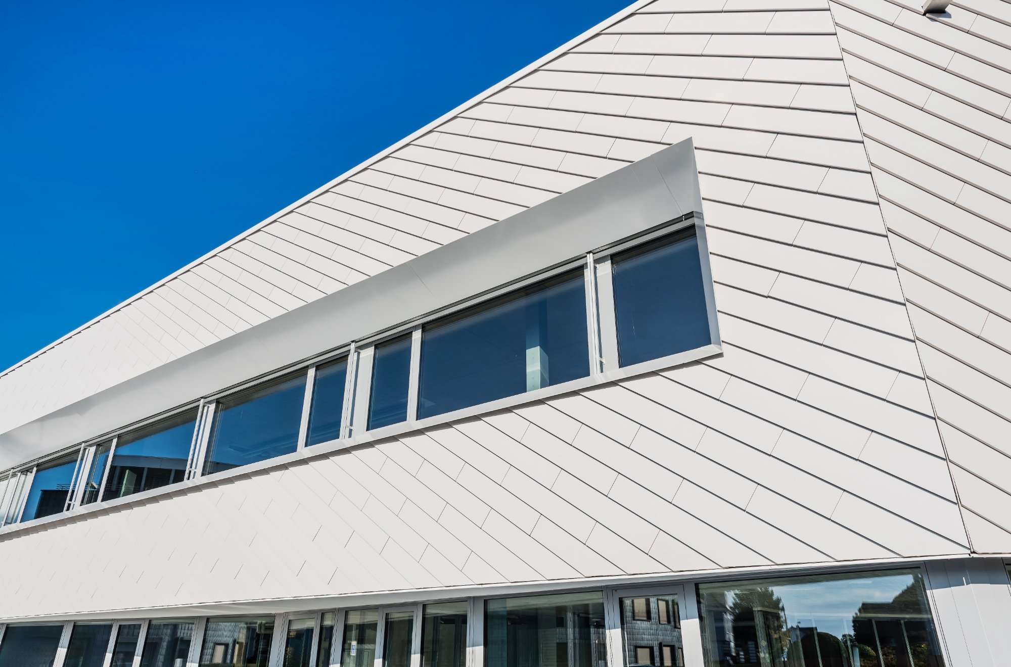 Die Fassade sollte dabei den Designcharakter des Gebäudes zuverlässig widerspiegeln. Daher fiel die Wahl auf eine vorgehängte hinterlüftete TONALITY®-Keramikfassade von Leipfinger-Bader: ein High-End-System, das Designanspruch, ökologische Langlebigkeit und wirtschaftliche Effizienz vereint. Insgesamt rund 500 Quadratmeter Keramikelemente wurden bei diesem Projekt verbaut. Der Farbton „Weiß-glänzend“ verfügt dabei über eine besonders natürliche Ausstrahlung. Mit der Farbwahl wirkt die Fassade damit einerseits sehr modern und selbstbewusst und bekennt sich andererseits zu ihrem unmittelbaren naturnahen Umfeld in Form des Bodensees sowie des ländlichen Kantons Thurgau. Der glänzende Designeffekt vermittelt darüber hinaus Hochwertigkeit, ohne aufdringlich zu wirken.