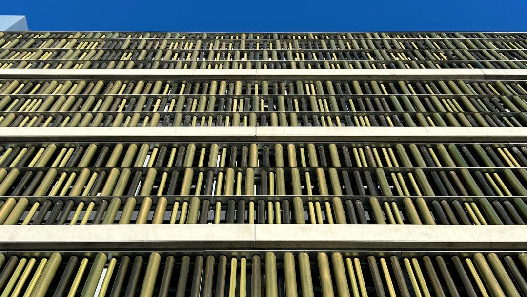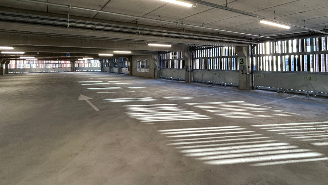 Die abwechslungsreiche Anordnung der Tubes in unterschiedlichen Größen erzeugt ein lebendiges Spiel aus Licht, Schatten und Farbe, das der Fassade Leichtigkeit und Dynamik verleiht. So wird das Parkhaus zu einem Beispiel moderner, nachhaltiger Stadtgestaltung – funktional, zurückhaltend und dennoch unverwechselbar.