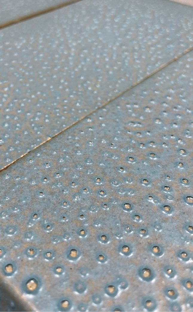 Grünlicher Vinaigrette-Effekt durch Manufaktur-Dickglasur.
