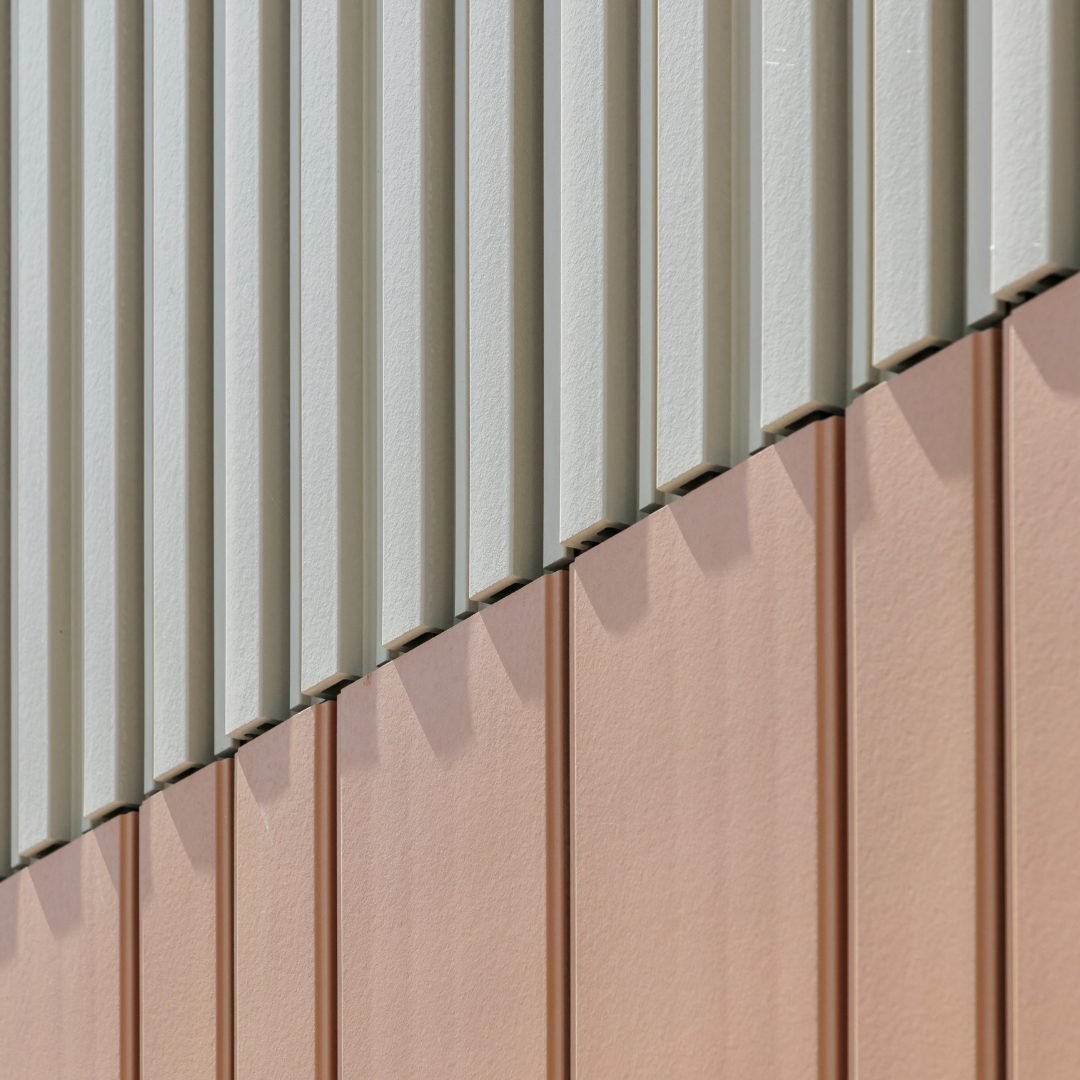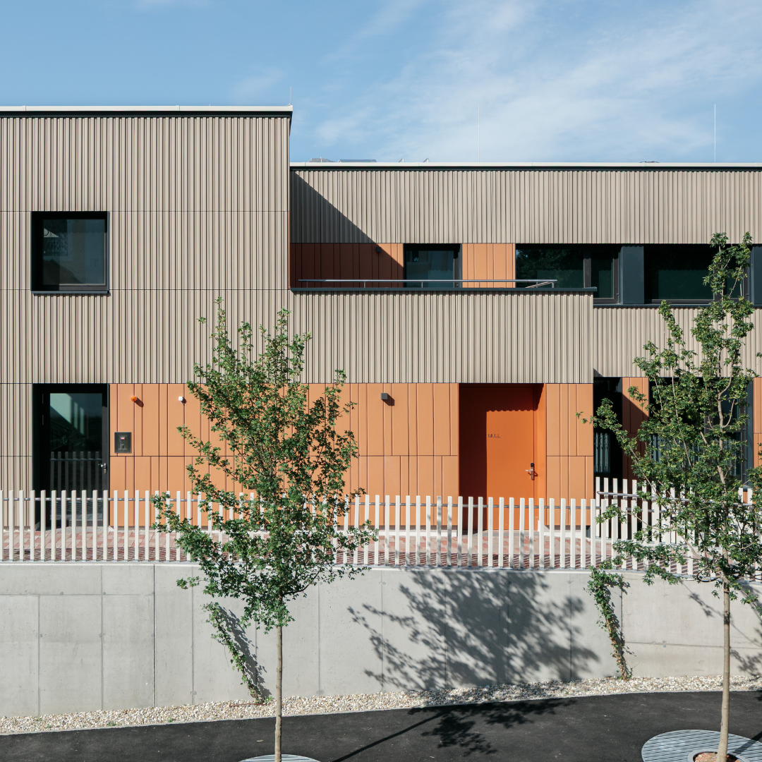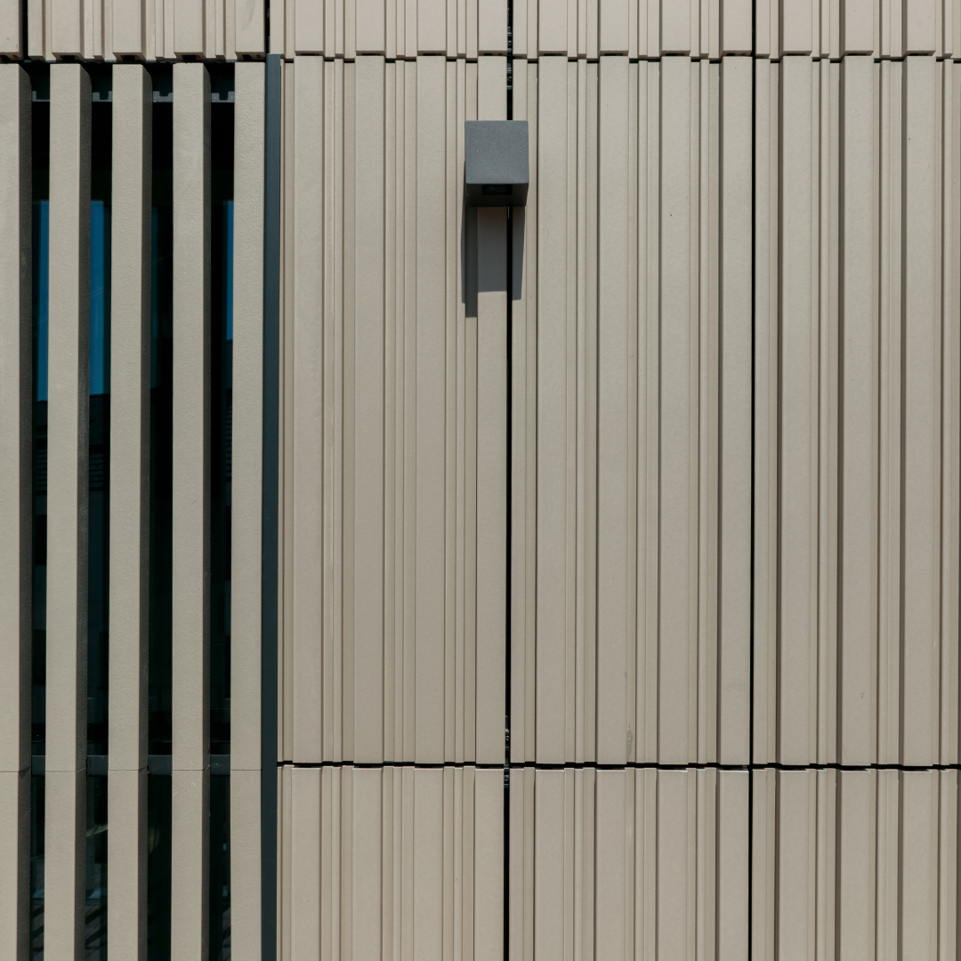 The terracotta façade from TONALITY® lends the building calm, depth, and character. Vertically mounted elements in the colors Cream light and Toscana envelop the building like a fine fabric. Slim ceramic baguettes (50 x 50 millimeters) add targeted accents, structure the façade, and create a lively effect of light and shadow.