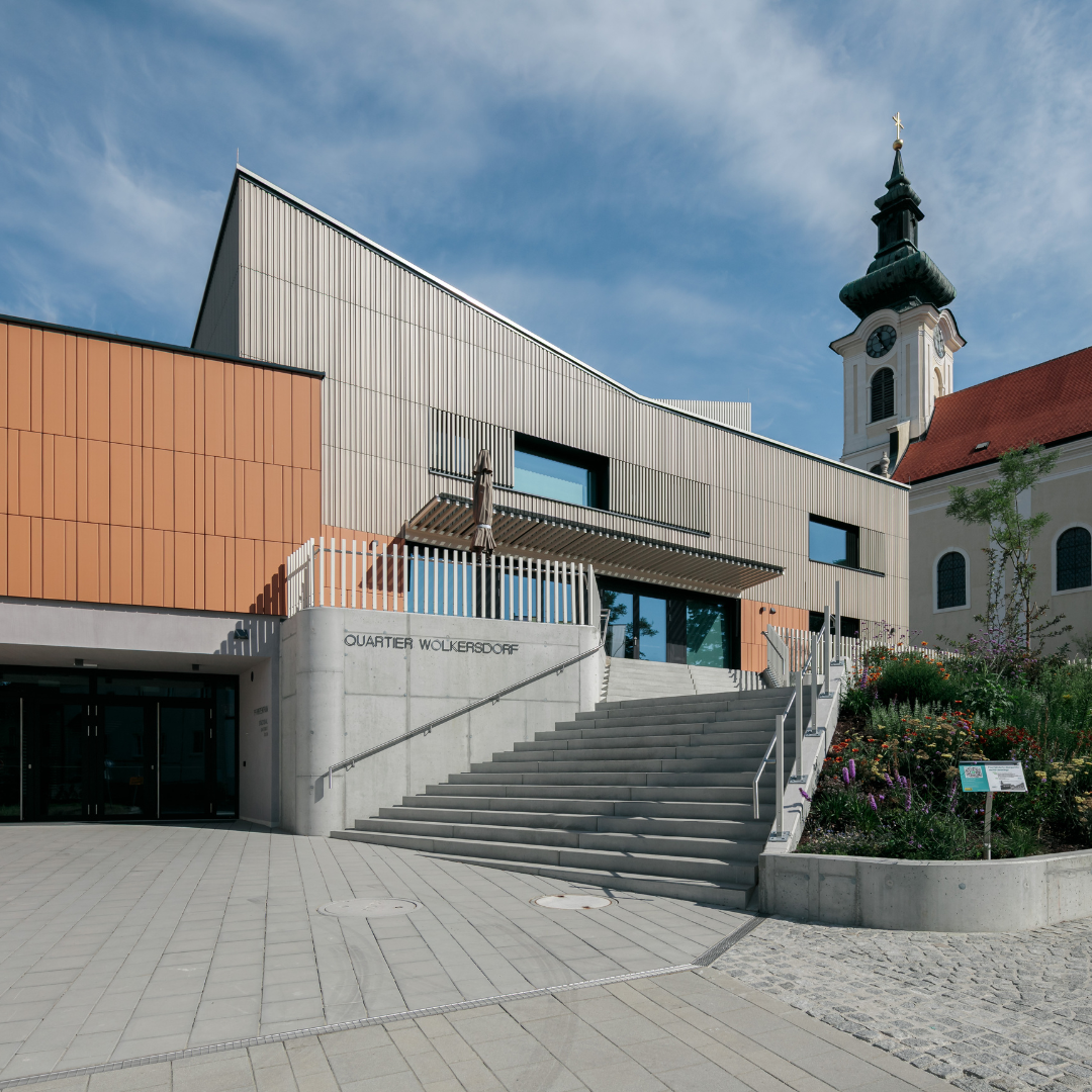 A place that connects people, generations, and functions: in Wolkersdorf in the Weinviertel region, the existing parish center was converted into a multifunctional event building. The new structure takes up the idea of community and translates it into a clear, structured design language.