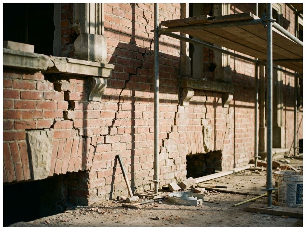 Crack patterns provide valuable information about structural stress and movement. Diagonal cracks often indicate differential settling, while horizontal cracks may suggest overloading. New cracks appearing during renovation work signal that the building is responding to changed conditions and may be approaching failure.